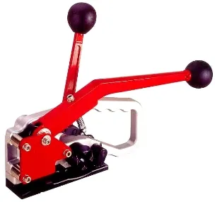 Комбинированное устройство, предназначено для обвязки грузов полиэстеровой (ПЭТ) лентой. Совмещает в себе натяжитель и зажимное устройство. Выполняет функции: натяжение ленты, скрепление (обжим) металлической скобы и обрезку концов ленты.